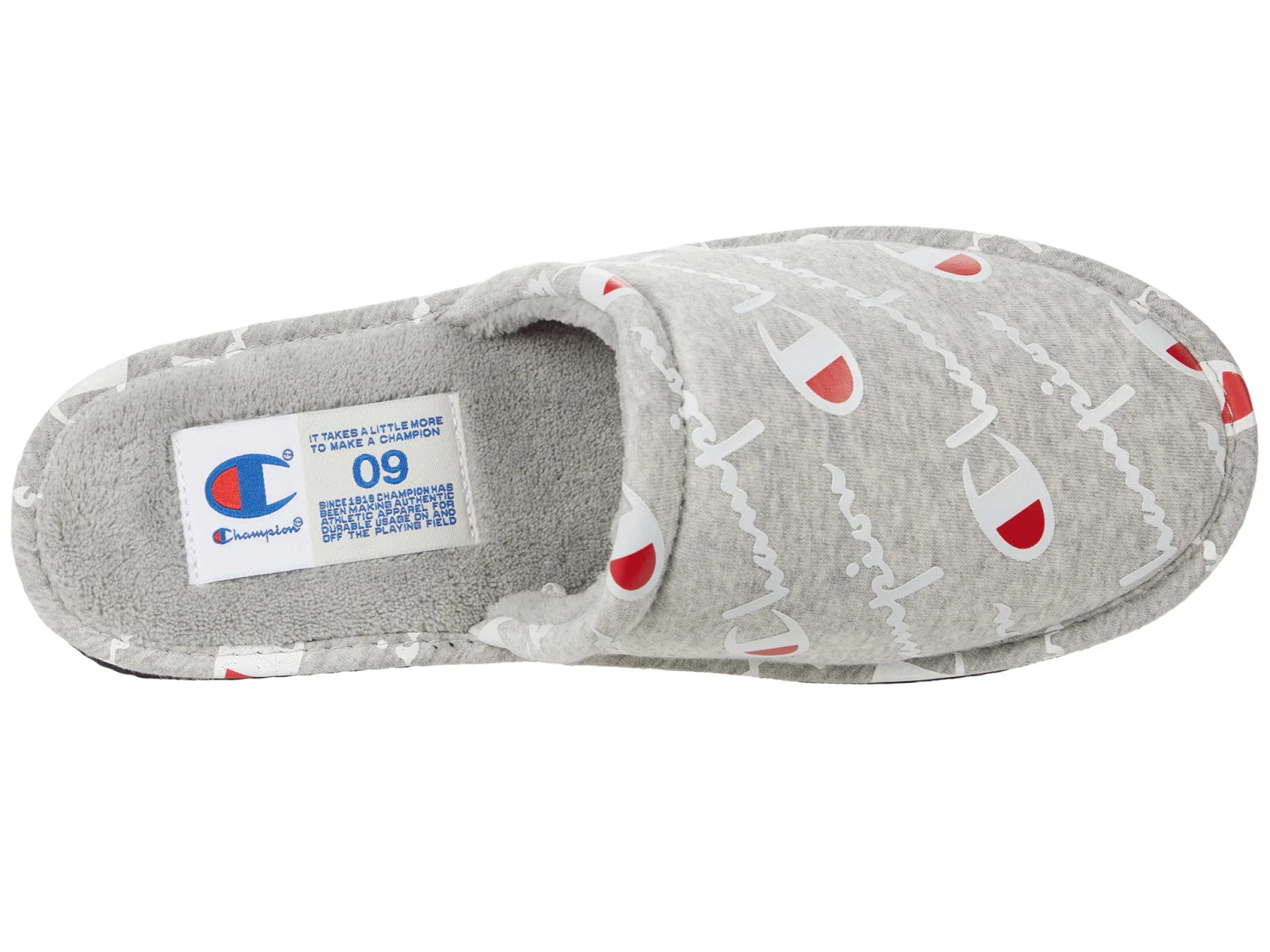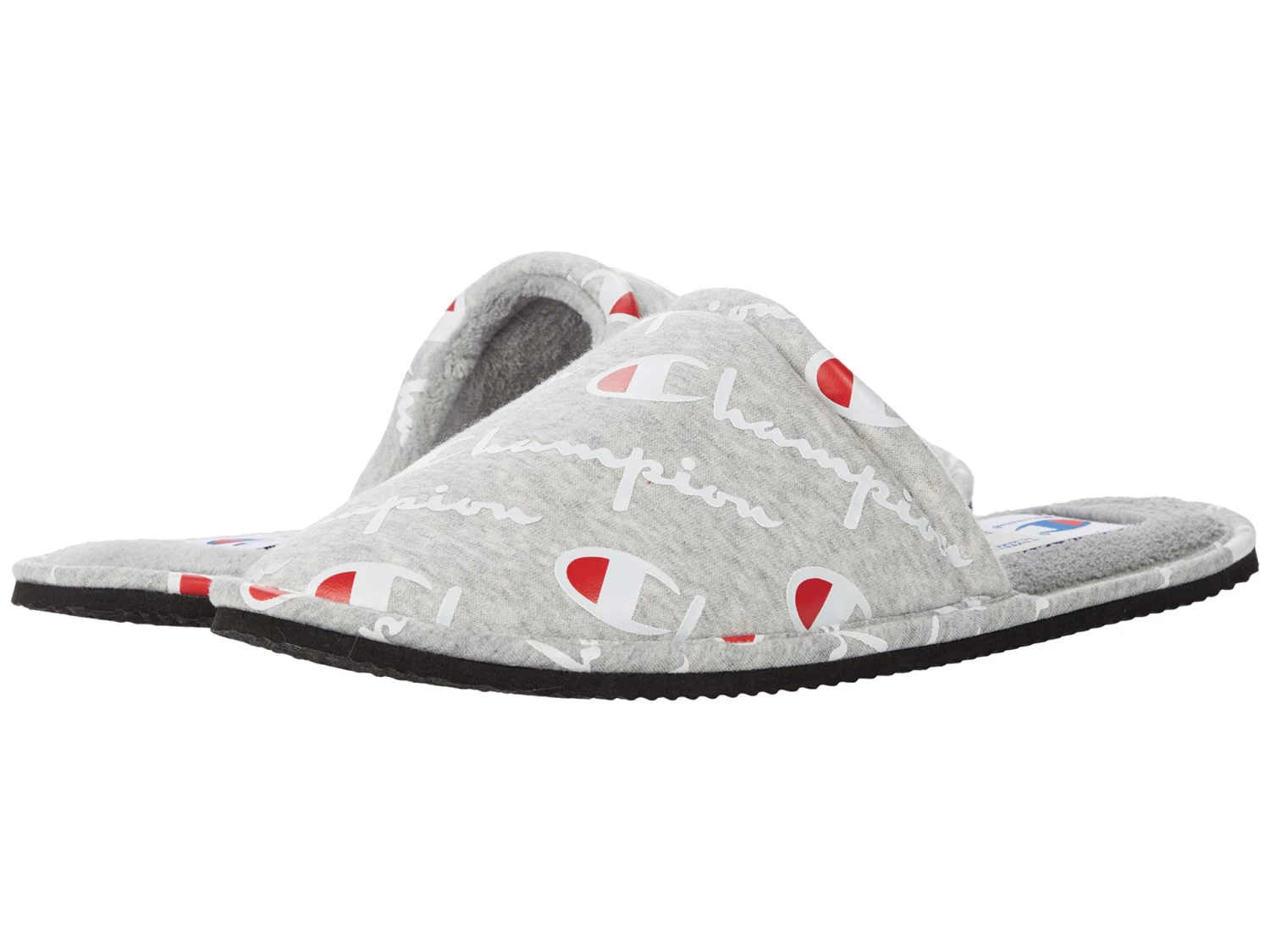 - Take it easy in the plush Champion® Sleepover Script slippers featuring a breathable textile upper and lightly cushioned insole for cozy comfort.