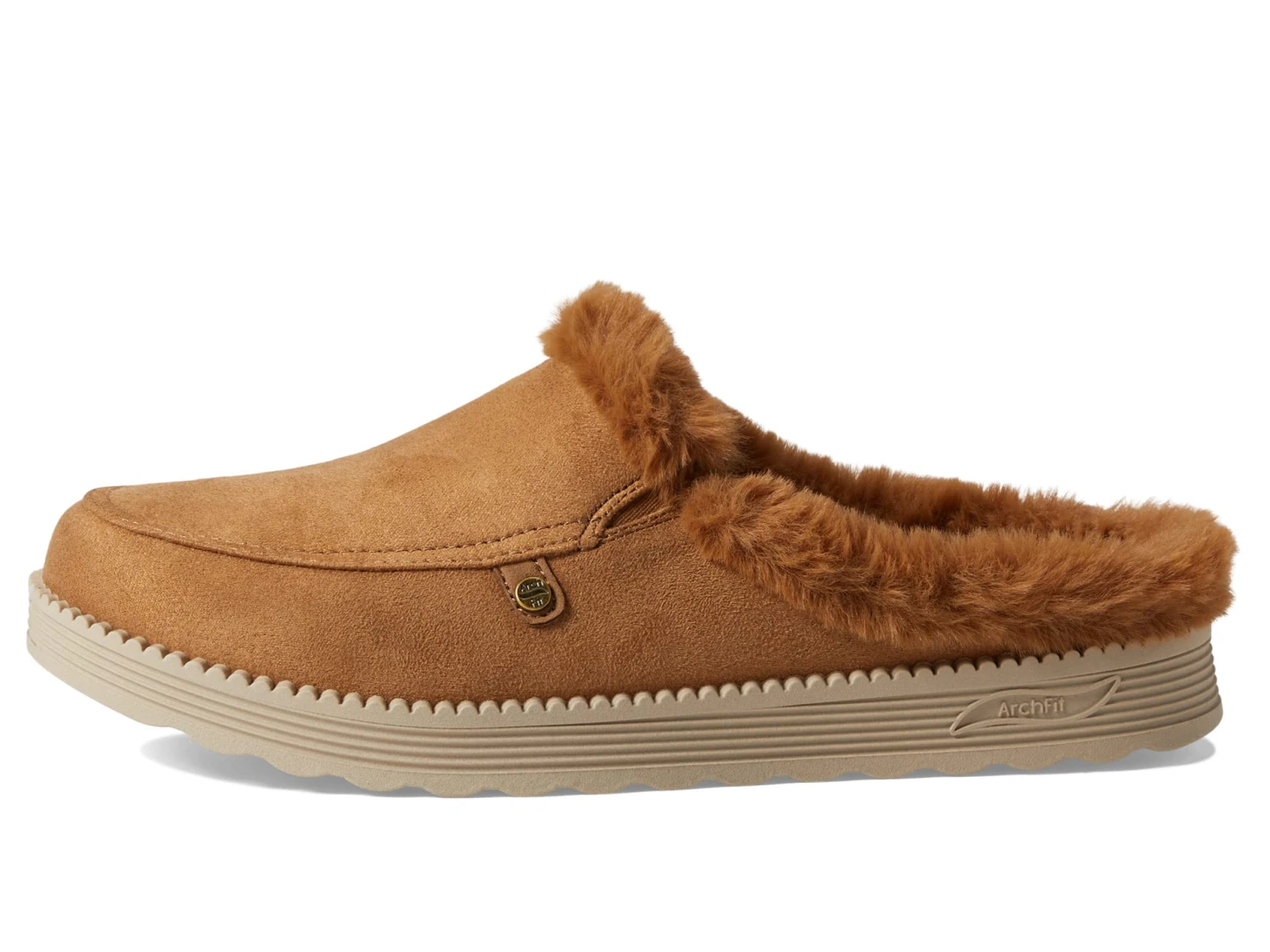 - Microfiber upper with faux fur trim.